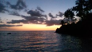 Do našeho hotelu, jménem Itsandra, což je asi jediný kvalitnější hotel na ostrově (tím kvalitnější znamená v evropském měřítku průměrný), jsme se dostali po šesté hodině večerní, a tedy jak je v těchto končinách obvyklé, se západem slunce. Z nějakého koupání v oceánu na malé písečné plážičce přilehlé k hotelu sešlo. Místo toho jsme se spokojili s večeří a pivem na terase hotelu s výhledem na pobřeží a oceán. Reálně šlo o výhled do tmy, jelikož na hladině oceánu ani na pobřeží příliš světel nezářilo a luna s hvězdami na vše samy nestačí.