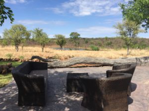 Jelikož jsme do těchto končin nedorazili zrovna v nejideálnější termín, jak už bylo zmíněno po období sucha a se začínající dešťovou sezónou, tu a tam se již nějaký ten déšť či spíše pořádná průtrž objevila, pondělní odpoledne a podvečer jsme strávili už jen v naší lodgi. Dorazili jsme po silné bouři, a tudíž okolní cesty mohly být dost rozblácené a hrozilo zapadnutí s autem. To mi velkou radost neudělalo, trošku jsem remcal, ale i tak jsme si západ slunce užili výhledem do krajiny z pohodlí venkovních křesílek, místo na korbě automobilu. Až to lehce vypadalo jako v kině, jelikož jsme k tomu samozřejmě měli nějaké to občerstvení a v blízkosti, asi 50 metrů od nás, se nacházelo menší jezírko (ve tmě i osvětlené z dálky), ke kterému se tu a tam nějaké to zvíře přišlo napojit, a především pak hejna ptactev se na něj slétávala.