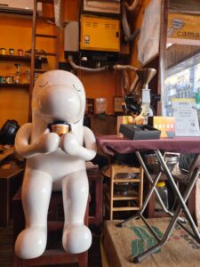 Jasně, pití čajíčku příp. sójového mléka na různé způsoby asi vyhrává, ale ani zrnko kávy tu ladem ležet nezůstane. Natrefit tu na kavárnu není žádná velká bojovka. Vlastně se dá říct, pokud jdete po ulici, je to bistro, bistro, 7 Eleven nebo Family Mart, kavárna a zase znovu a dokola. Nemluvě o tom, že kávu mají ve svém repertoáru právě i obchody typu 7 Eleven.